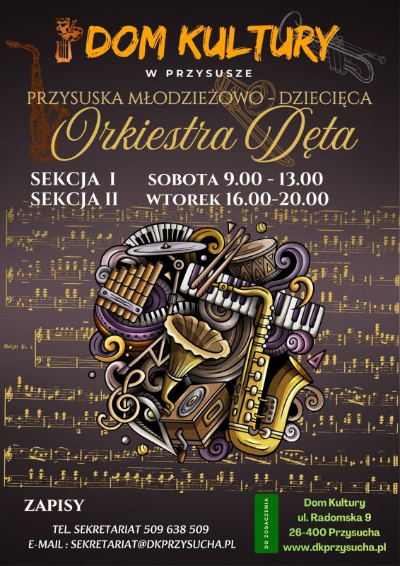 Zapisy do przysuskiej młodzieżowo-dziecięcej Orkiestry Dętej 09-02-2026Data publikacji, 09-02-2026, Karolina SiaraAutor, Karolina Siara, 162Ilość wyświetleń, 162